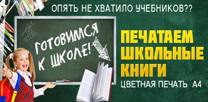 Начинается учебный год и пора задуматься о подготовке к школе. Печатаем любые книги, учебники, тетради. Цветная печать А4 листа всего 1 грн ! Высококачественная полноцветная печать позволяет с точностью воспроизводить оригиналы книг. При групповом заказе предоставляем скидку.